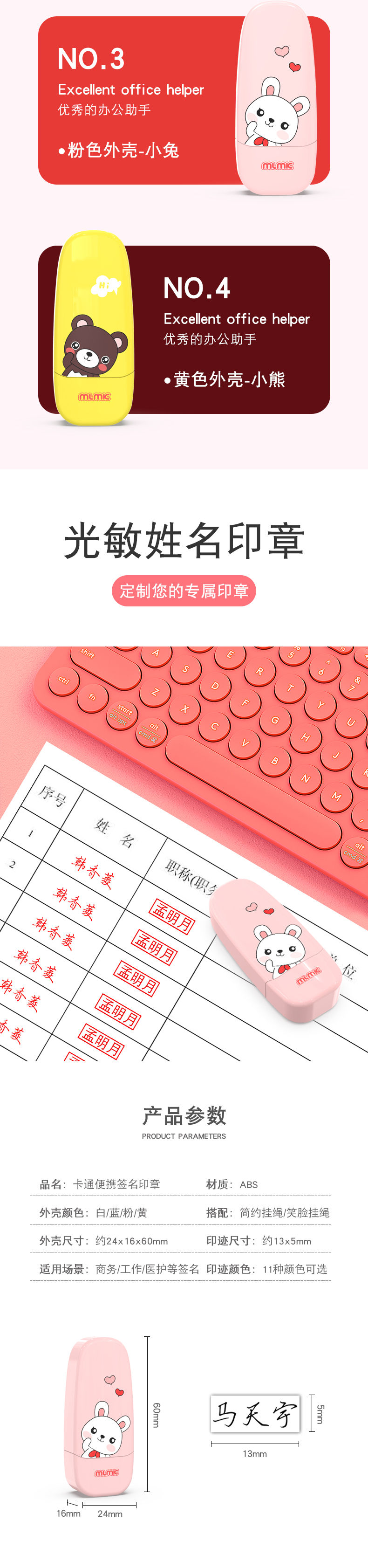 鲁印坊 刻章卡通护士印章姓名定做名字扁章制作签名图章人名光敏盖章私章 粉色外壳小兔 印迹尺寸13X5毫米(含挂绳+印油)【图片 价格 品牌 报价】-