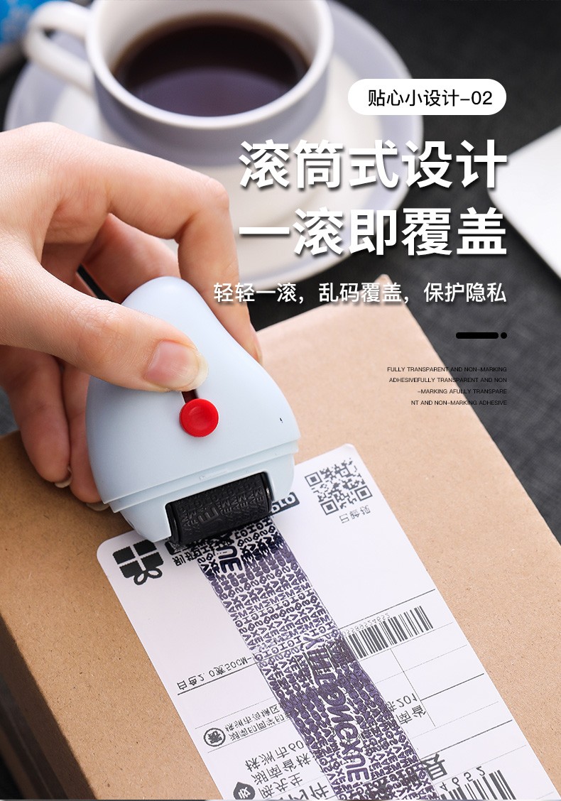 保密印章滚轮乱码涂改印章隐私防泄密私密快递单地址个人信息开箱器盖字屏蔽器涂抹四种颜色带拆箱器 印油三瓶