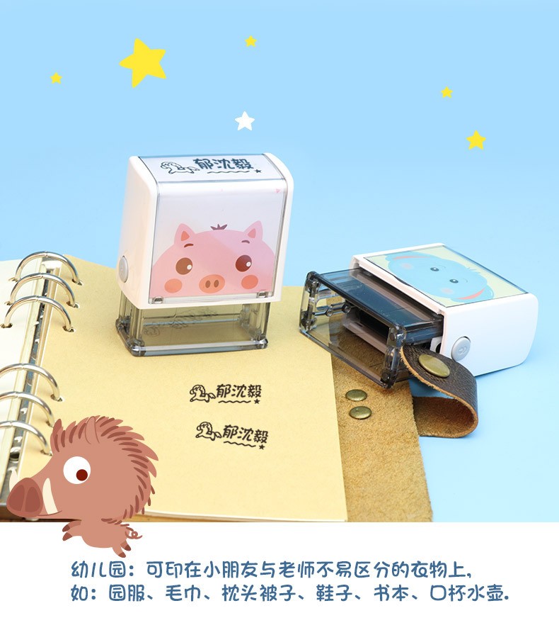 暖先森 儿童姓名印鑑防水洗小学生衣服印鑑名字印鑑可爱卡通宝宝儿童幼儿园盖章制作名字贴姓名贴 升级大印面款【下单备注儿童姓名】
